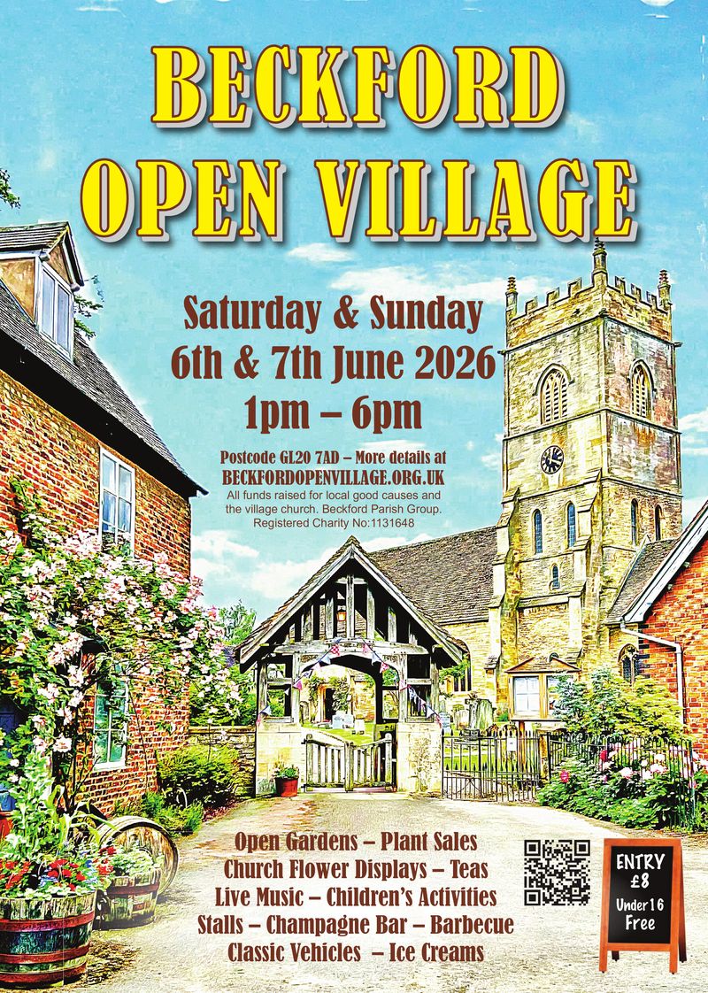 Beckford Open Village Beckford, Tewkesbury GL20 7AD A celebration of village life with at least 13 beautiful open gardens, church flower displays, teas with homemade cakes, champagne bar, barbecue, and other refreshments. There will also be live music, plant sales, various stalls, activities for children, classic cars and lots more! Dogs on leads welcome. £8 entry (U16 free) - Free parking. For further information visit www.beckfordopenvillage.org.uk |